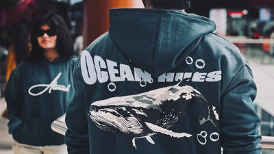 Introducing our new OCEAN HUES Hoodie. This hoodie is crafted from premium heavyweight organic fleece with an oversized fit. Inspired by the depth and calm of the ocean, it features India’s first spray-effect finish, making every piece truly one of a kind. The 16-inch puff print whale design at the back captures the strength and beauty of ocean life.